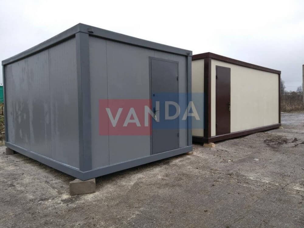 Контейнер состоит из металлического сварного основания. Стены изготовлены из сэндвич-панелей с прокладкой утеплителя. Крыша покрыта крашенным холоднокатаным металлом 1,2 мм. Помещение обустроено пароизоляцией при помощи технической пленки, которая проложена на полу и потолке. Внутренняя облицовка потолка выполнена из ПВХ-панелей, пол – из шпунтованной доски. Вход в помещение оборудован запирающейся металлической дверью.