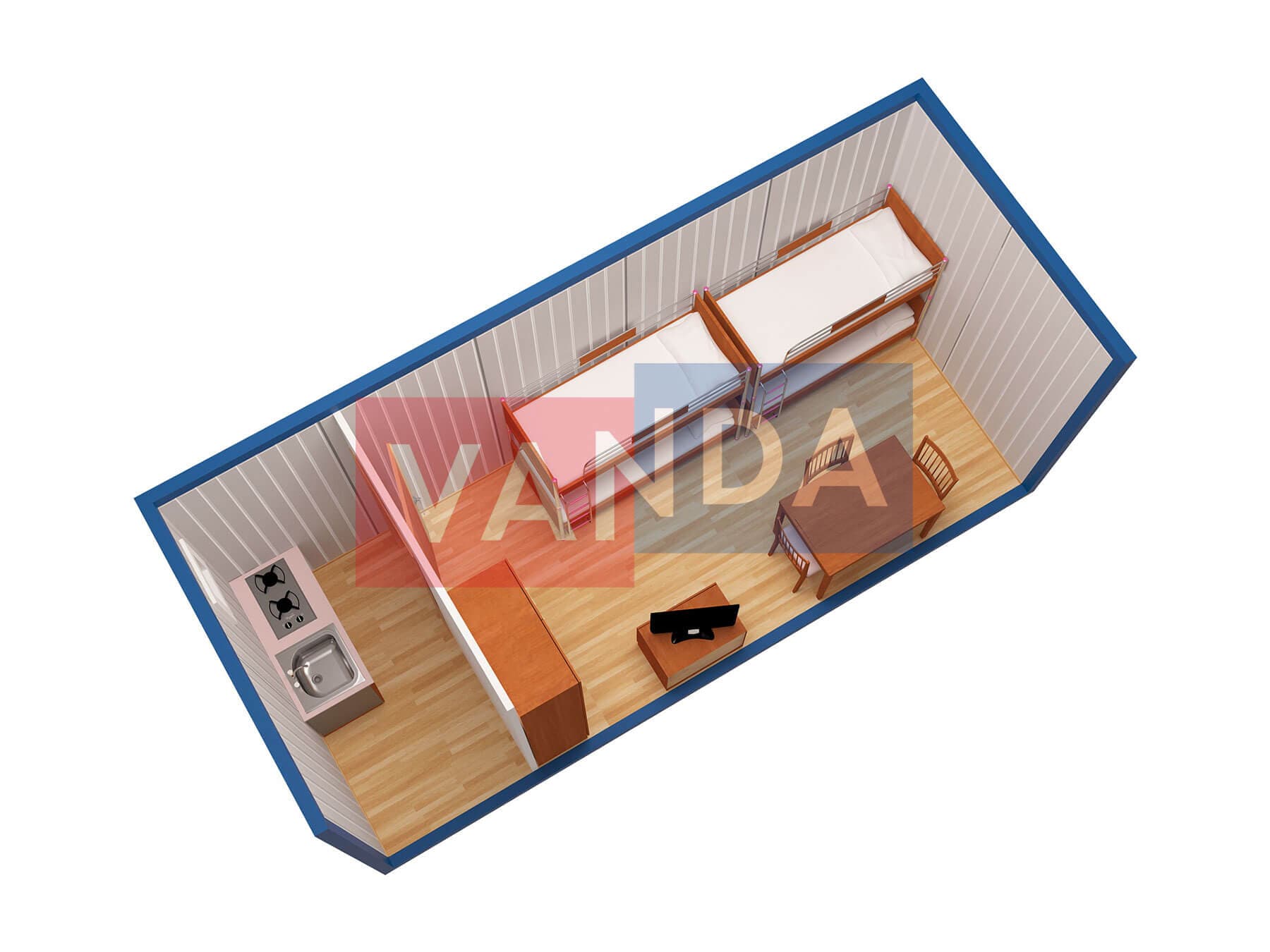 Металлическая бытовка без тамбура 5,85 x 2,4 - Вагонка ПВХ