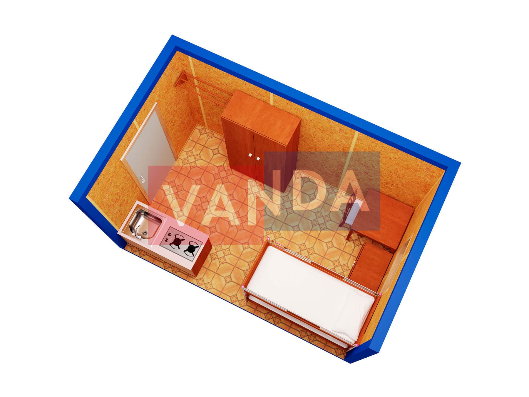 Металлическая бытовка без тамбура 5,85 x 2,4 - Вагонка ПВХ
