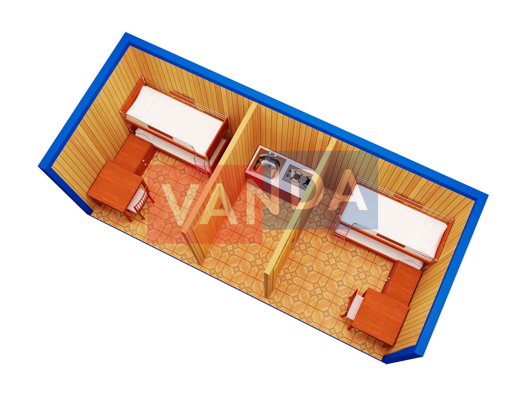 Модульная бытовка 7.2x6.0 Вагонка деревянная