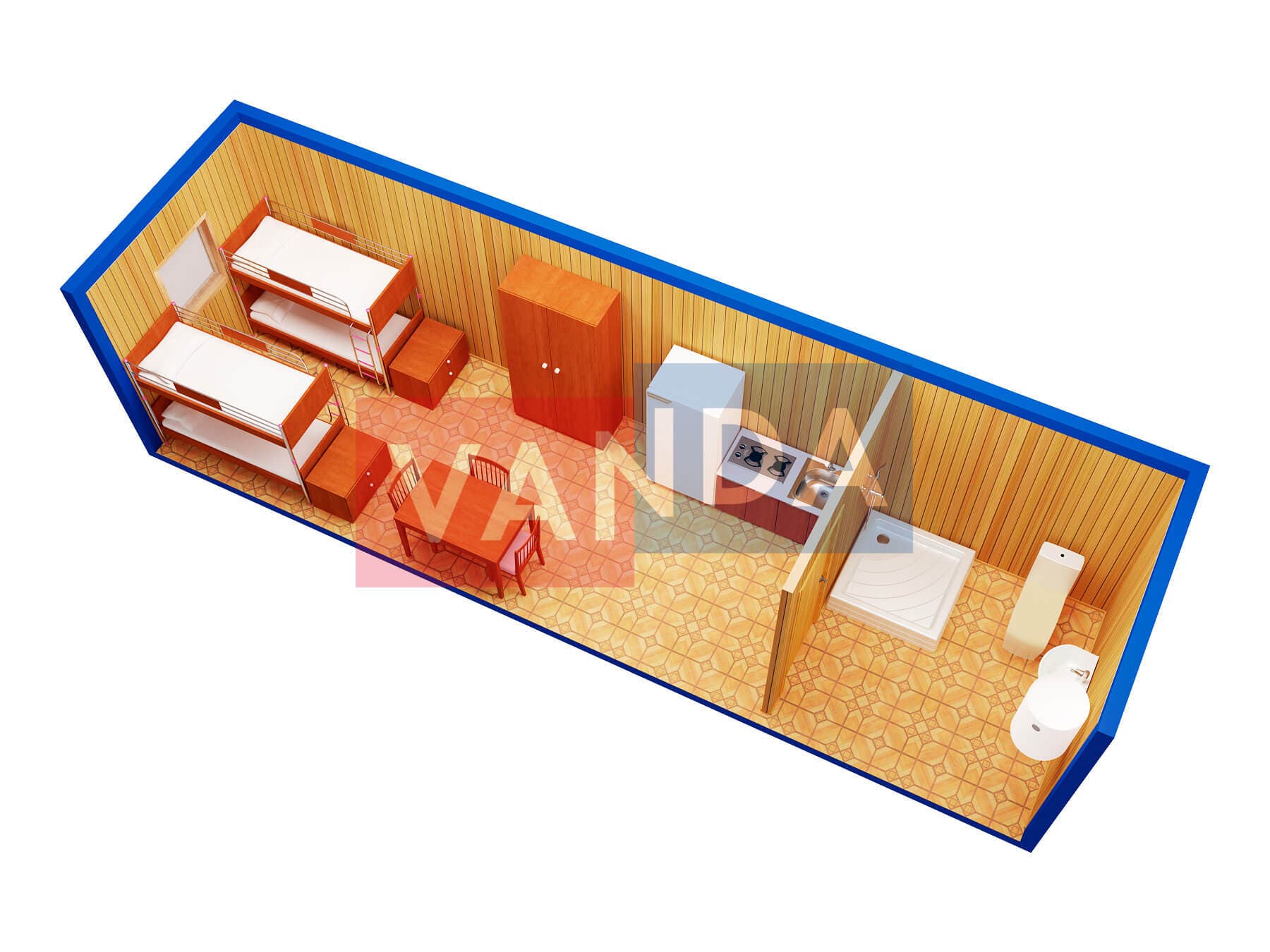 Мы сами изготавливаем блок контейнер металлический 9,0 x 2,4 - вагонка деревянная, общей площадью 21.6 квадратных метров, имеющий наиболее доступную цену в нашем каталоге, и предлагающий широчайшие возможности для модернизаций. Простое решение с минимальными затратами.