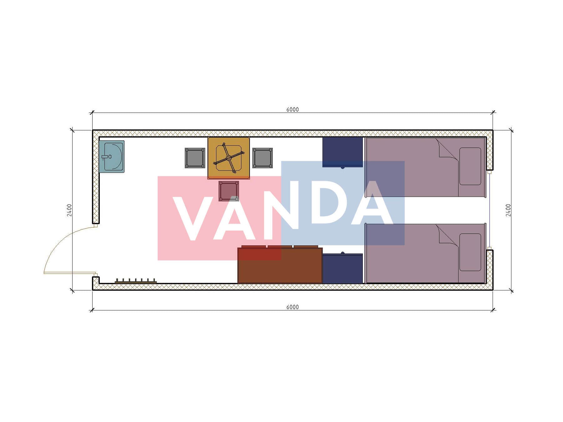 Металлическая бытовка без тамбура 5,85 x 2,4 - Оргалит ДВП