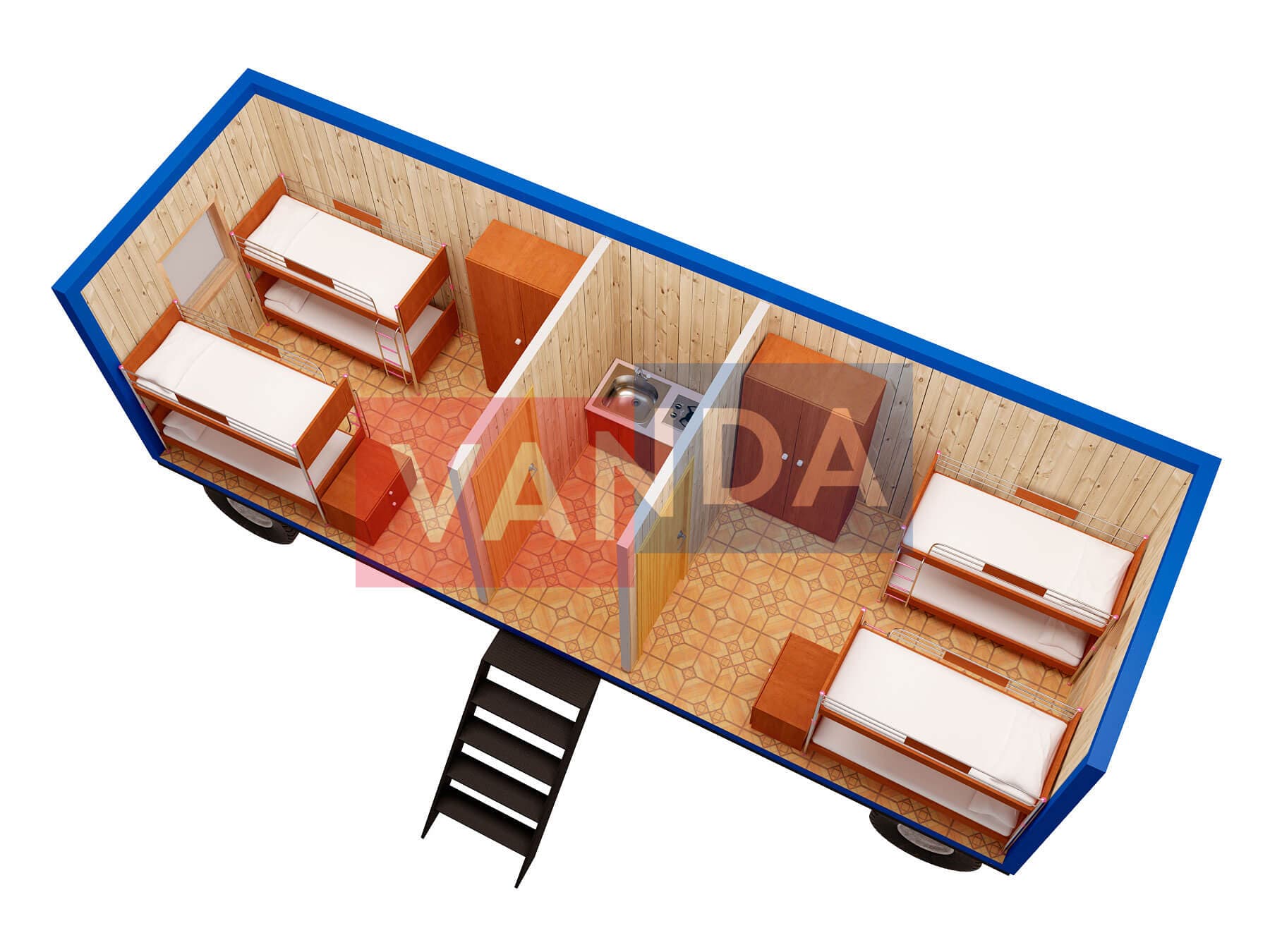 Мы сами изготавливаем вагончик на шасси 8,0 x 2,4, общей площадью 19.2 квадратных метров, имеющий наиболее доступную цену в нашем каталоге, и предлагающий широчайшие возможности для модернизаций. Простое решение с минимальными затратами.