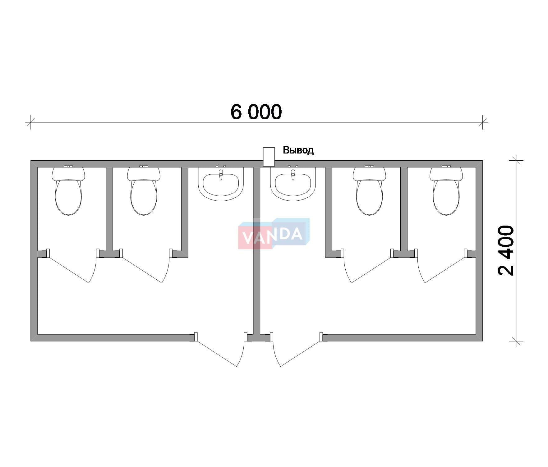 Модульная бытовка с плоской крышей 4.8х6.0