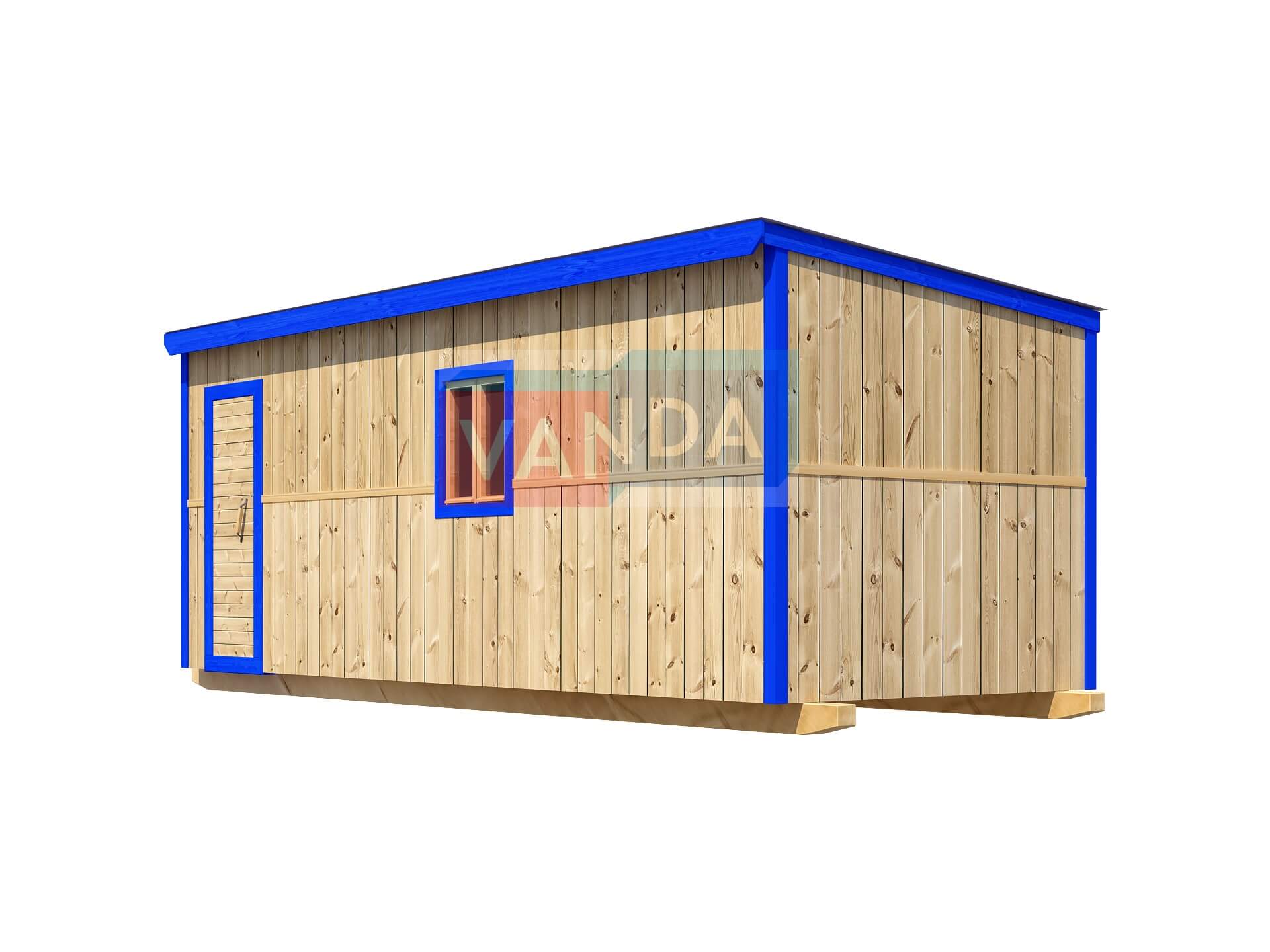 Строительная бытовка №7 (вариант 1) изготавливается из качественных материалов: обвязочный венец (сани): брус 100х150 мм., половые лаги: обрезная доска 40х150 мм., через 80 см. (плашмя), черновые полы: обрезная доска 20 мм. (2 сорт), (не сплошной настил, через 10 - 15 см.), чистовой пол покрыт: ДСП строительное 16 мм.. Для изготовления каркаса и перегородок используется: брусок 40х50 мм.. Для стропил используется: обрезная доска 40х150 мм., на кровлю ложится: оцинкованный профлист. Качественная наружная отделка: Имитация бруса, внутренняя отделка стен: Оргалит-ДВП, внутренняя отделка потолка: Оргалит-ДВП. Выполнено утепление: Минеральная вата «ISOVER» – 50 мм. и пароизоляция: плёнка техническая. Бытовка комплектуется окнами: деревянное, двустворчатое, одинарное остекление 800х800 мм., входной дверью: деревянная, наборная и внутренними дверями: деревянная, наборная (при наличии перегородки).