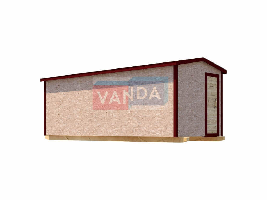 Строительная бытовка без внутренней отделки №5 (вариант 3) изготавливается из качественных материалов: обвязочный венец (сани): брус 100х150 мм., половые лаги: обрезная доска 40х150 мм., через 80 см. (плашмя), черновые полы: обрезная доска 20 мм. (2 сорт), (не сплошной настил, через 10 - 15 см.), чистовой пол покрыт: ДСП строительное 16 мм.. Для изготовления каркаса и перегородок используется: брусок 40х50 мм.. Для стропил используется: обрезная доска 40х150 мм., на кровлю ложится: оцинкованный профлист. Качественная наружная отделка: Плита OSB 9 мм.. Выполнено утепление полов: Минеральная вата «ISOVER» – 50 мм. и пароизоляция: плёнка техническая. Бытовка комплектуется окнами: деревянное, двустворчатое, одинарное остекление 800х800 мм., входной дверью: деревянная, наборная.