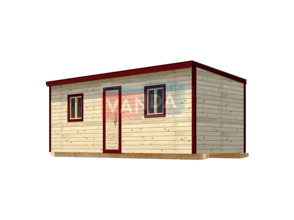 Строительная бытовка без внутренней отделки №8 (вариант 1) изготавливается из качественных материалов: обвязочный венец (сани): брус 100х150 мм., половые лаги: обрезная доска 40х150 мм., через 80 см. (плашмя), черновые полы: обрезная доска 20 мм. (2 сорт), (не сплошной настил, через 10 - 15 см.), чистовой пол покрыт: ДСП строительное 16 мм.. Для изготовления каркаса и перегородок используется: брусок 40х50 мм.. Для стропил используется: обрезная доска 40х150 мм., на кровлю ложится: оцинкованный профлист. Качественная наружная отделка: Имитация бруса. Выполнено утепление полов: Минеральная вата «ISOVER» – 50 мм. и пароизоляция: плёнка техническая. Бытовка комплектуется окнами: деревянное, двустворчатое, одинарное остекление 800х800 мм., входной дверью: деревянная, наборная.