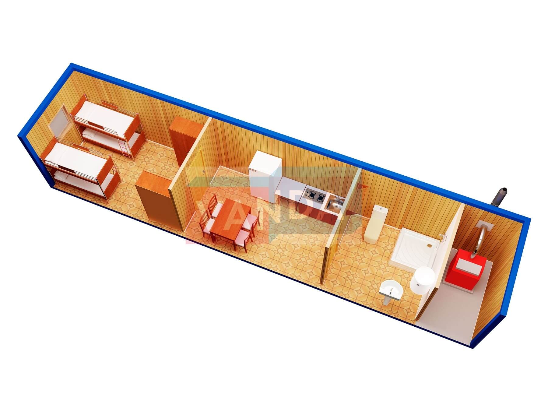 Металлическая бытовка 12,0 x 2,4 - Вагонка деревянная удовлетворит все потребности строителей, контейнер подойдет для размещения на строительной площадке. Из преимуществ изделия следует отметить самую доступную цену, высокую надежность, долговечность и широчайшие возможности по комплектации и модернизации БК.