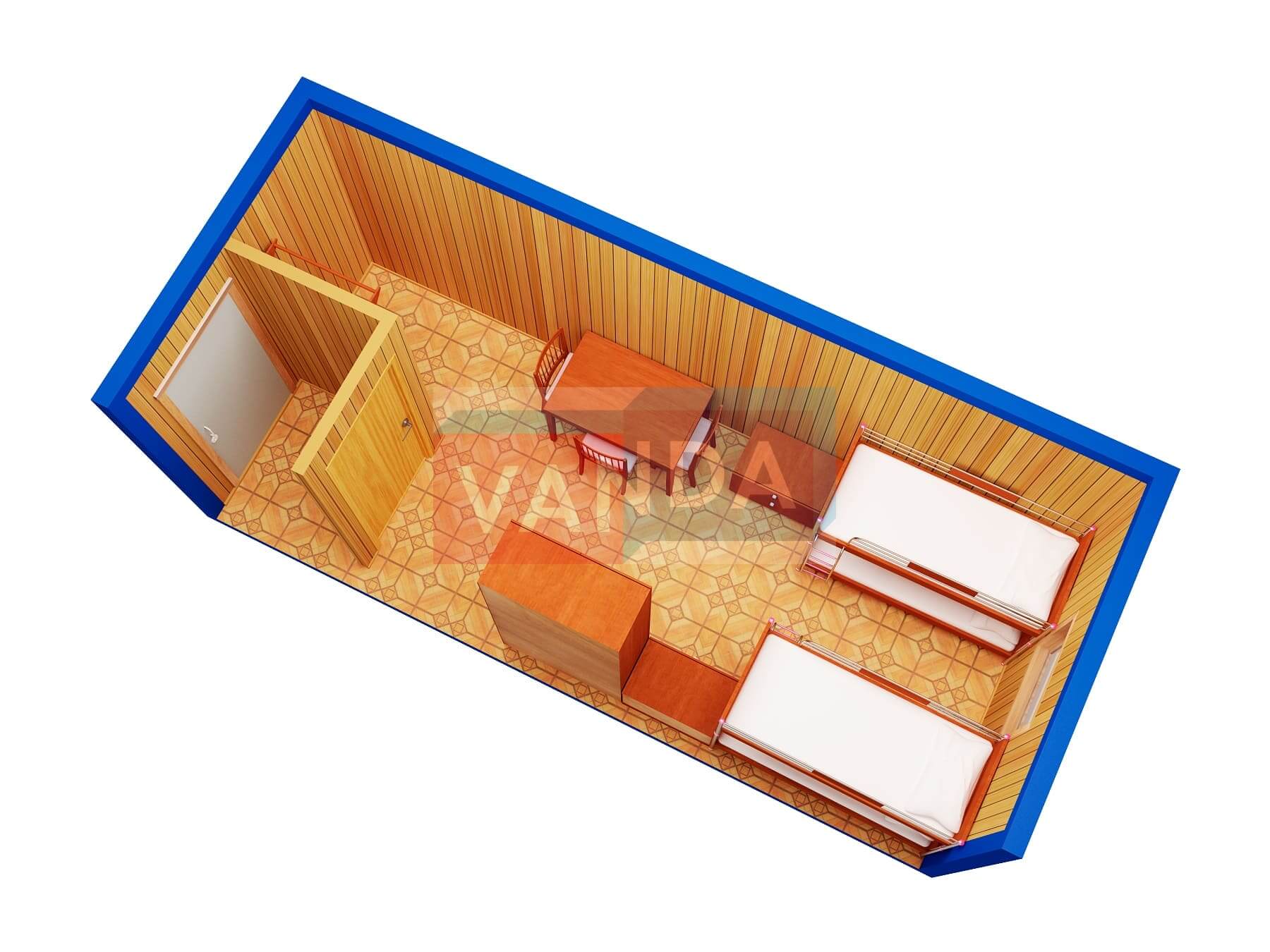 Металлическая бытовка без тамбура 5,85 x 2,4 - Вагонка ПВХ