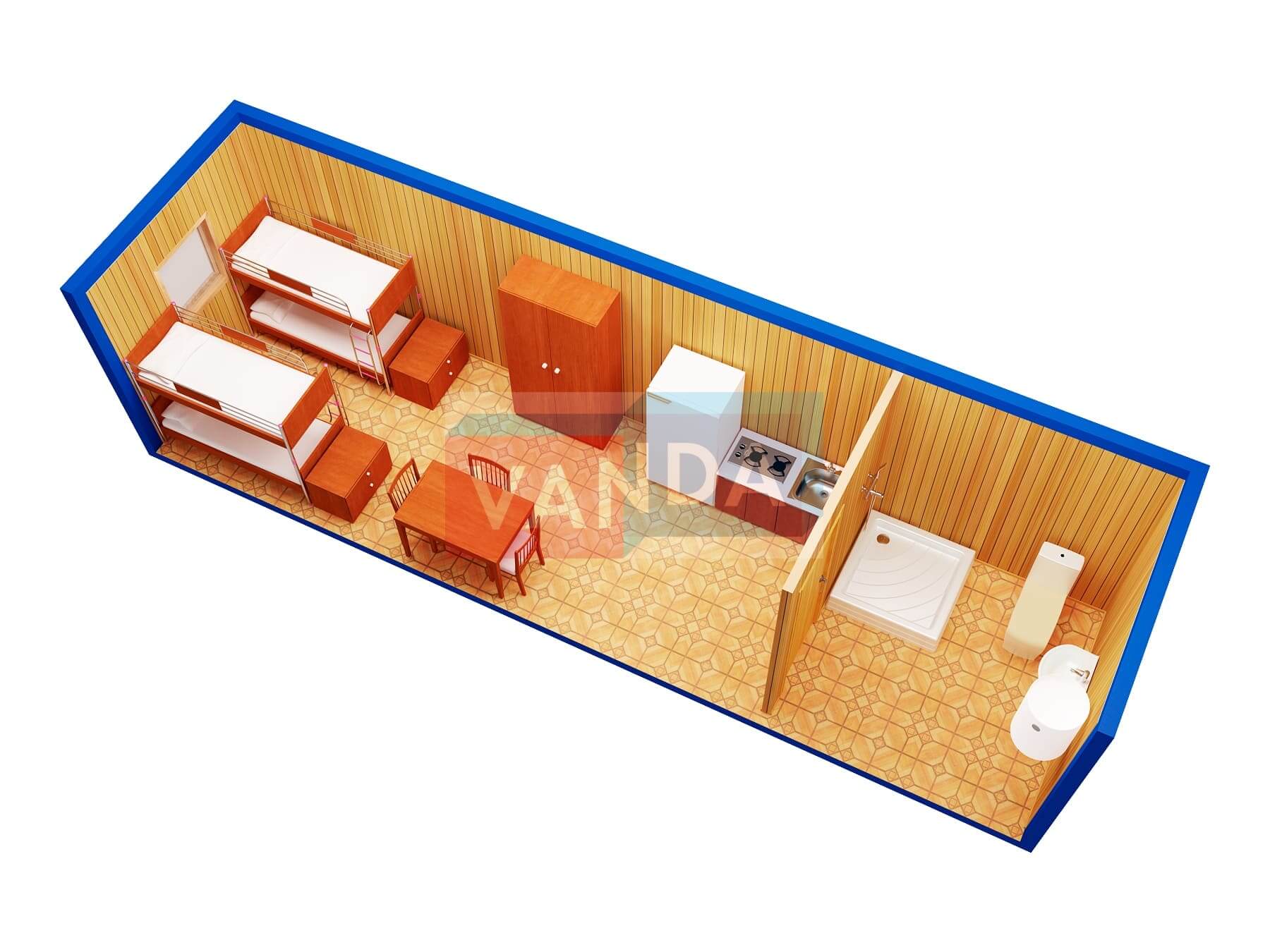 Металлическая бытовка 9,0 x 2,4 - Вагонка деревянная удовлетворит все потребности строителей, контейнер подойдет для размещения на строительной площадке. Из преимуществ изделия следует отметить самую доступную цену, высокую надежность, долговечность и широчайшие возможности по комплектации и модернизации БК.