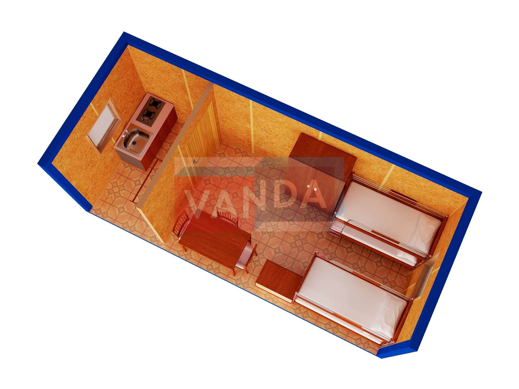 Металлическая бытовка с кухней в тамбуре 5,85 x 2,4 - Оргалит ДВП