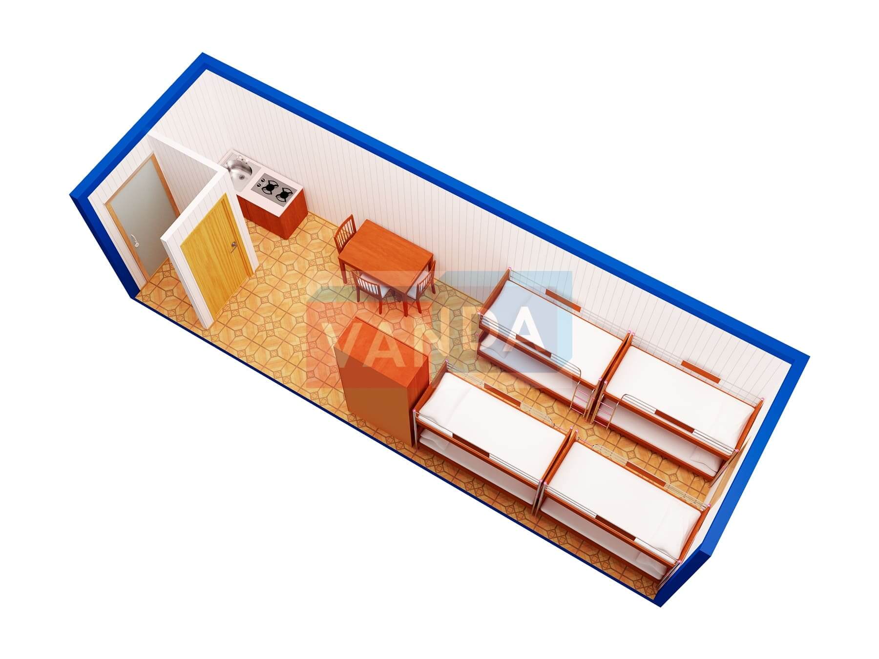 Мы сами изготавливаем металлическая бытовка с тамбуром 8,0 x 2,4 - вагонка пвх, общей площадью 19.2 квадратных метров, имеющий наиболее доступную цену в нашем каталоге, и предлагающий широчайшие возможности для модернизаций. Простое решение с минимальными затратами.