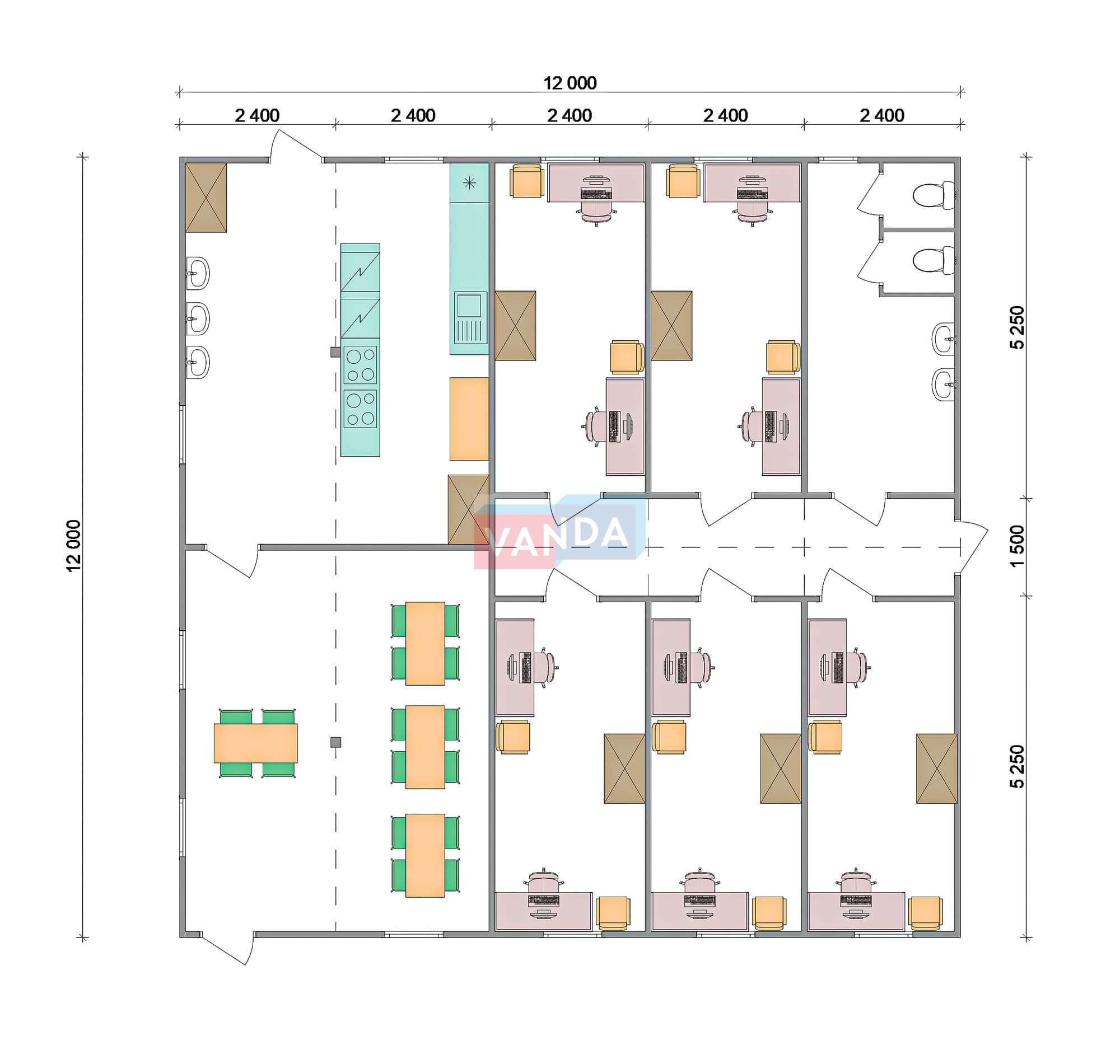 ПРОЕКТ СТОЛОВОЙ ИЗ БЛОК КОНТЕЙНЕРОВ 12x24