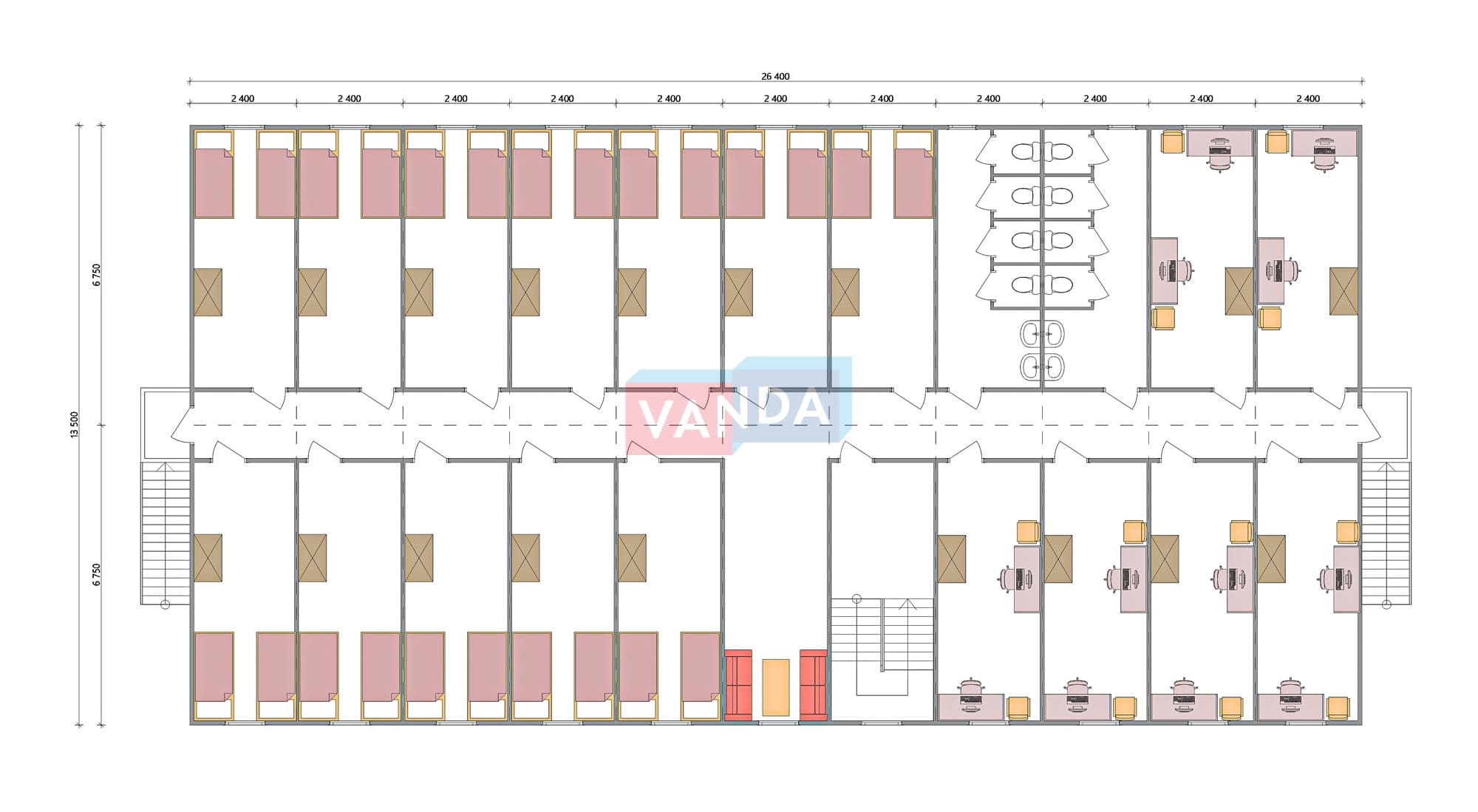 Проект общежития из блок контейнеров 9x21,6 ЛДСП