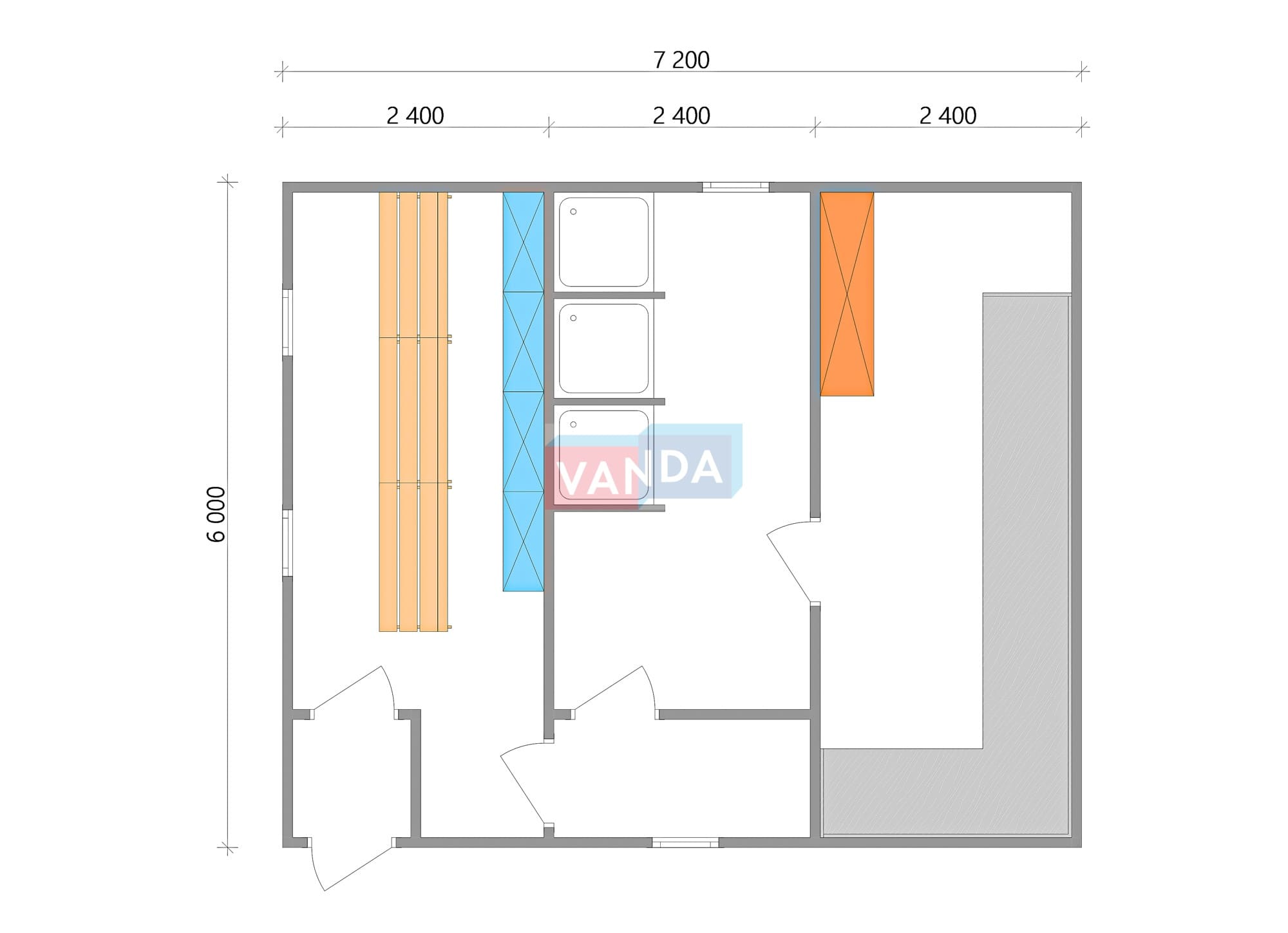 Модульная бытовка с двухскатной крышей 7.2x6.0