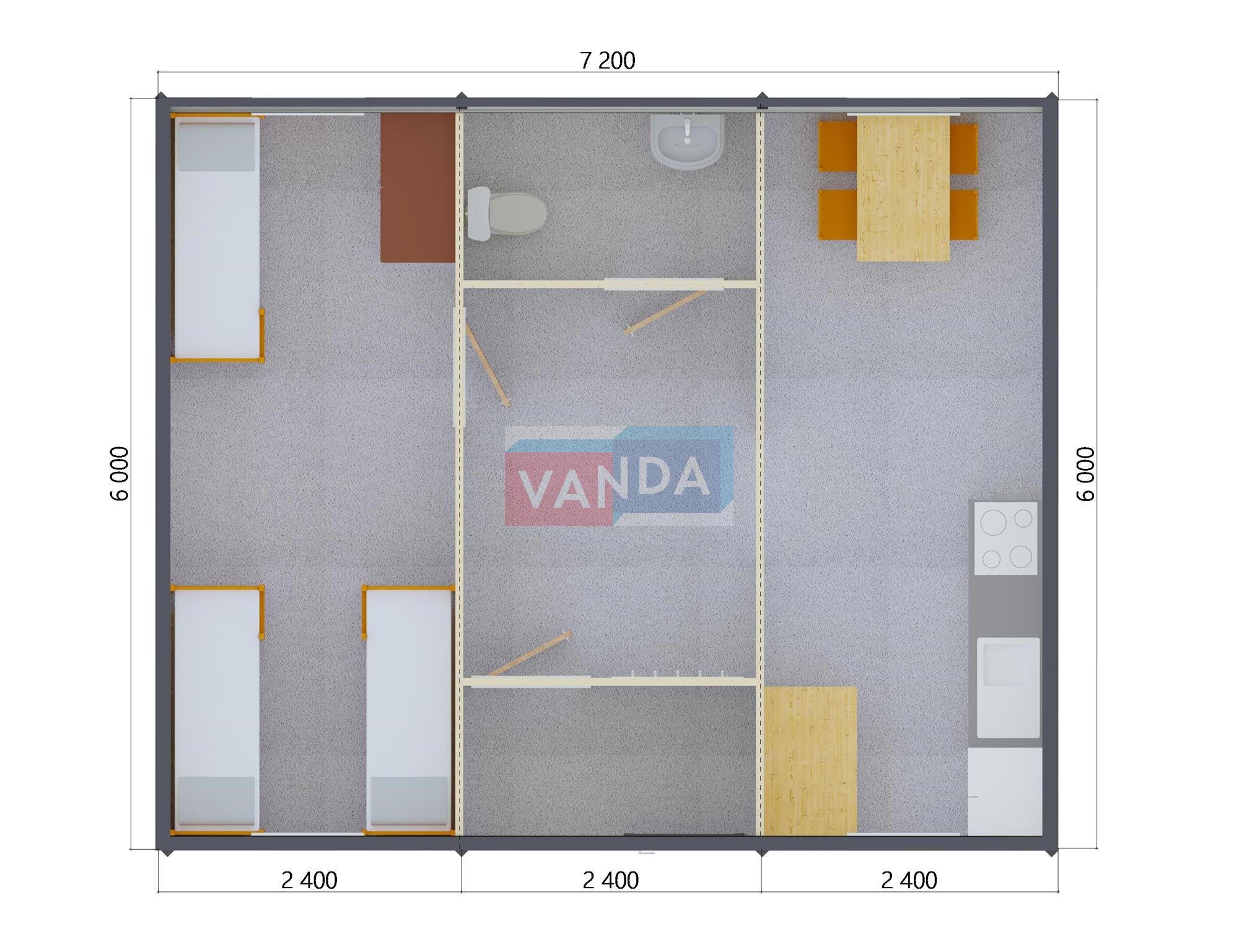 • Габаритные размеры - стандартные размеры одного модульного здания (наружные): Длина: 6 м. Ширина: 2,4 м. Высота: 2,5 м.