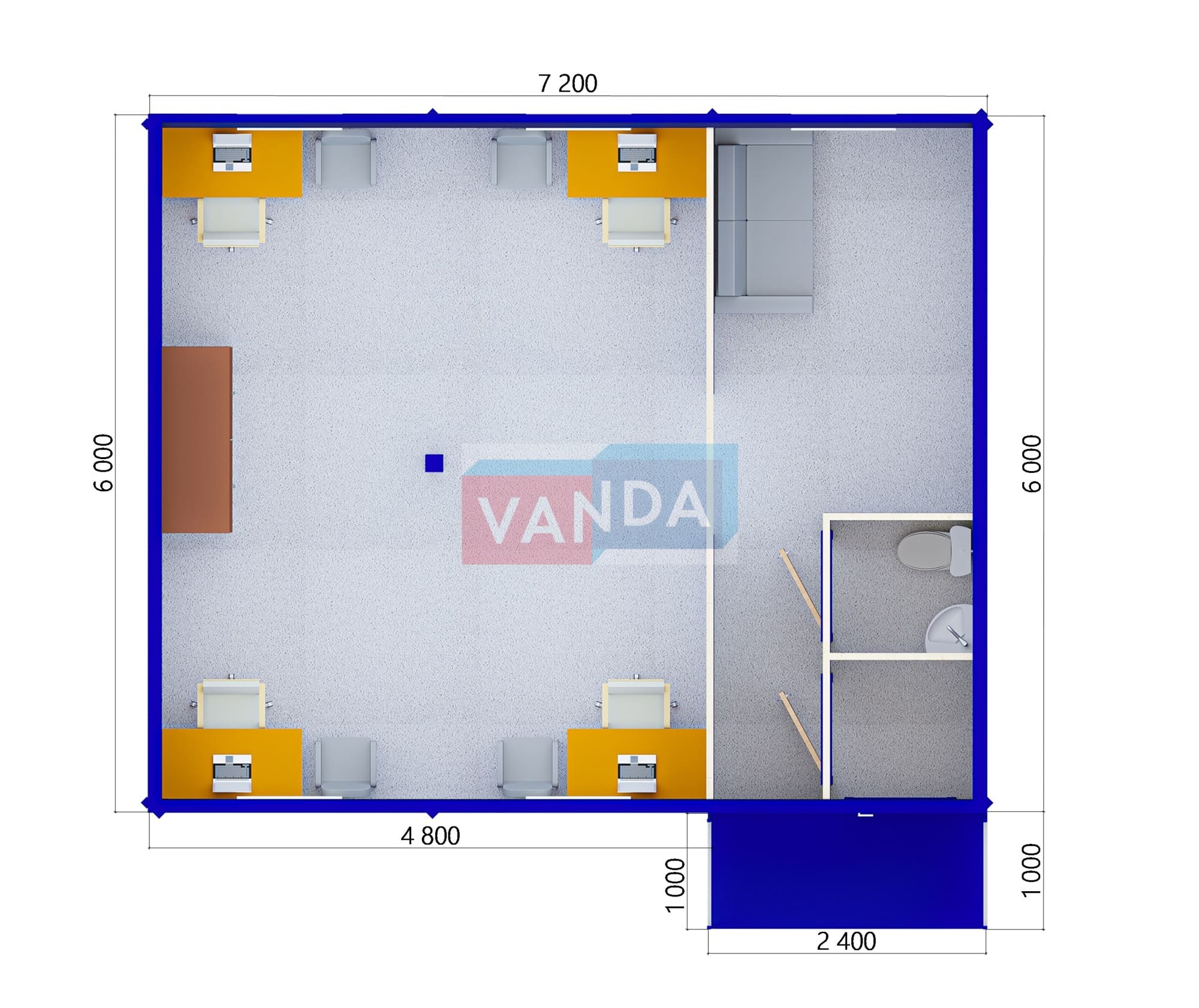 • Габаритные размеры - стандартные размеры одного модульного здания (наружные): Длина: 6 м. Ширина: 2,4 м. Высота: 2,5 м.