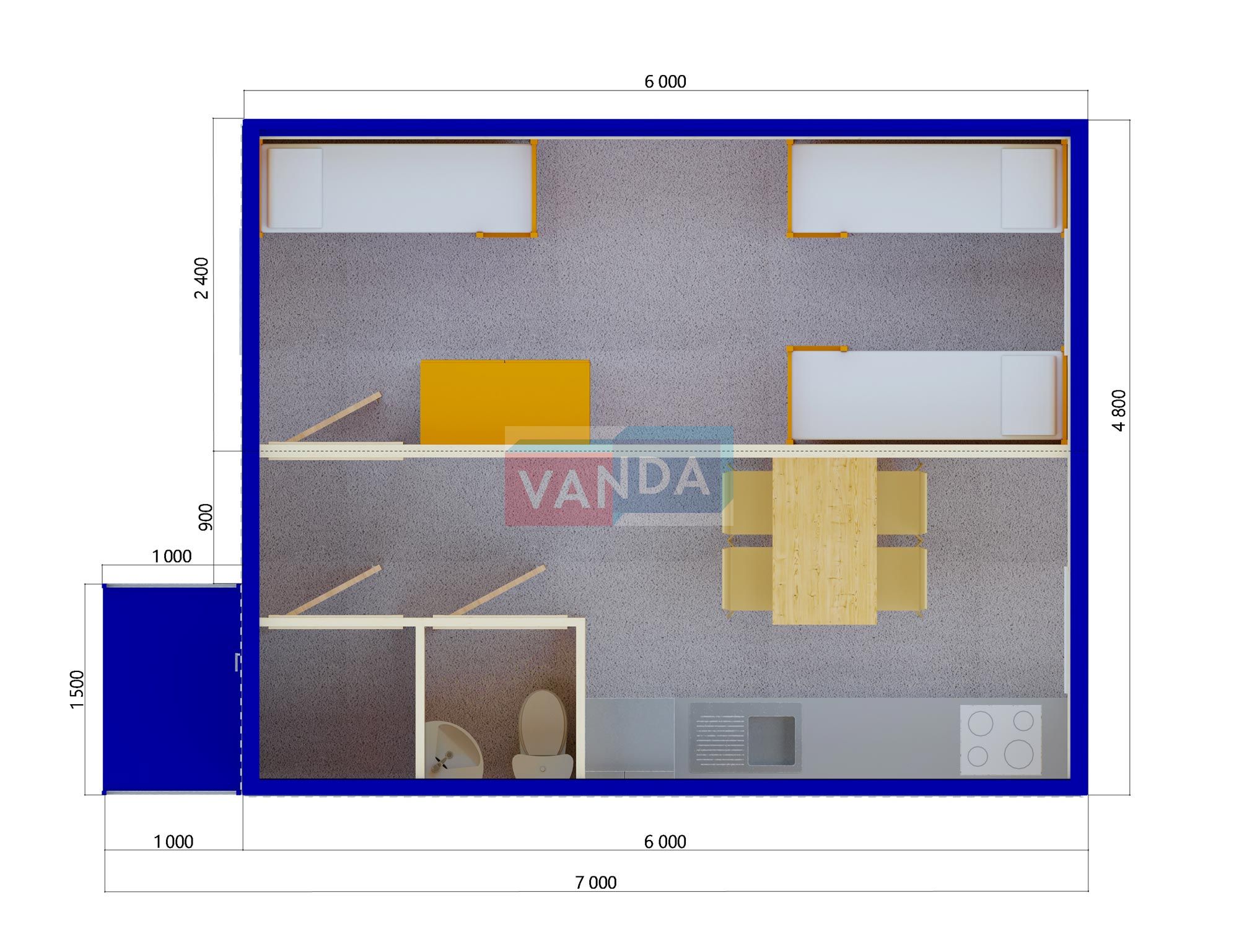 • Габаритные размеры - стандартные размеры одного модульного здания (наружные): Длина: 6 м. Ширина: 2,4 м. Высота: 2,5 м.