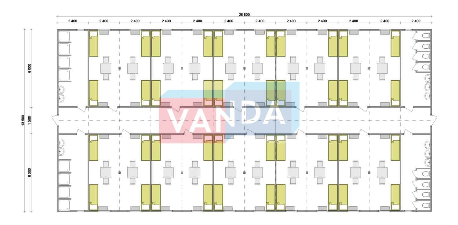 Проект общежития из блок контейнеров 13,5x28,8 Панели МДФ