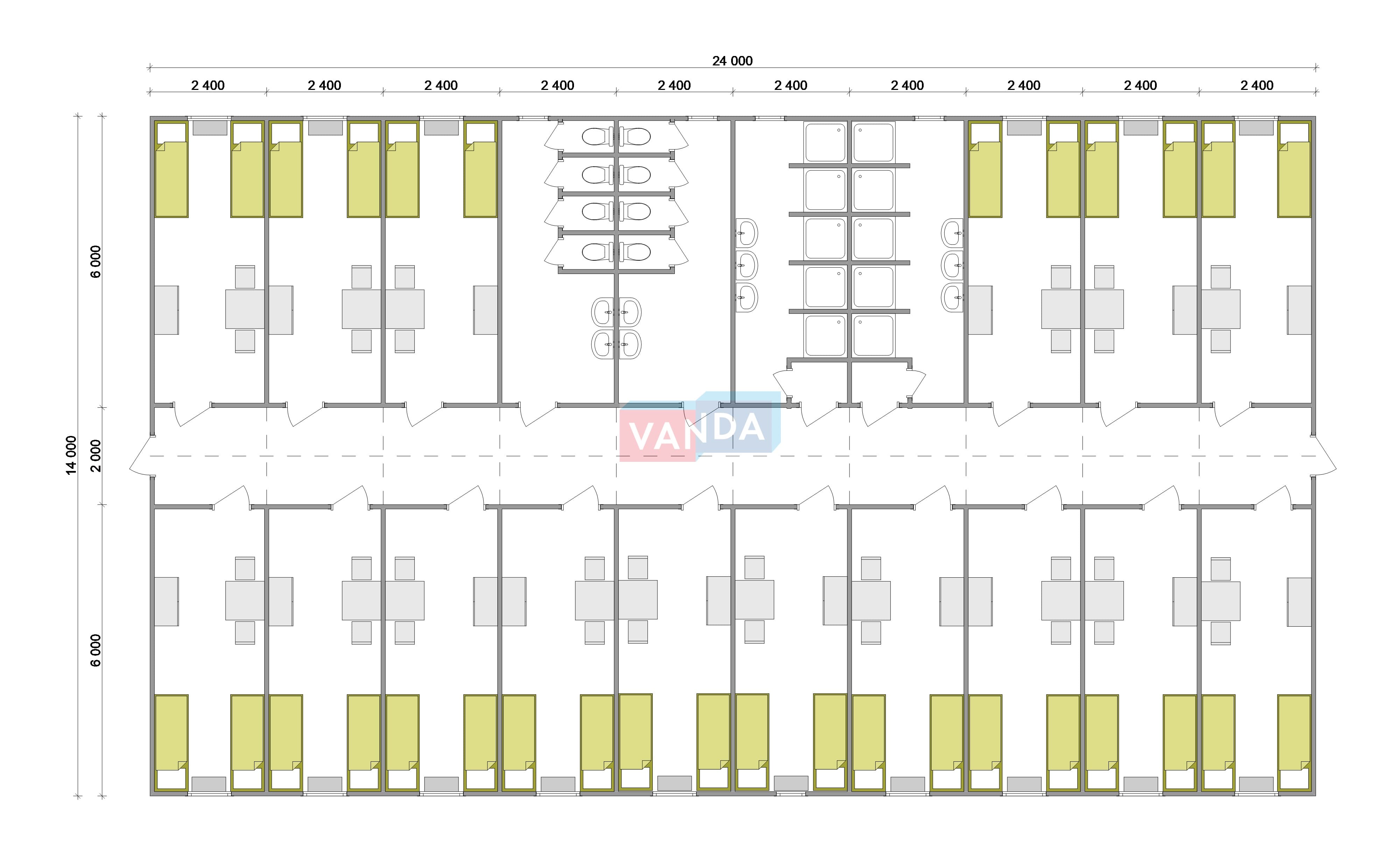 Проект общежития из блок контейнеров 14x24 Панели МДФ