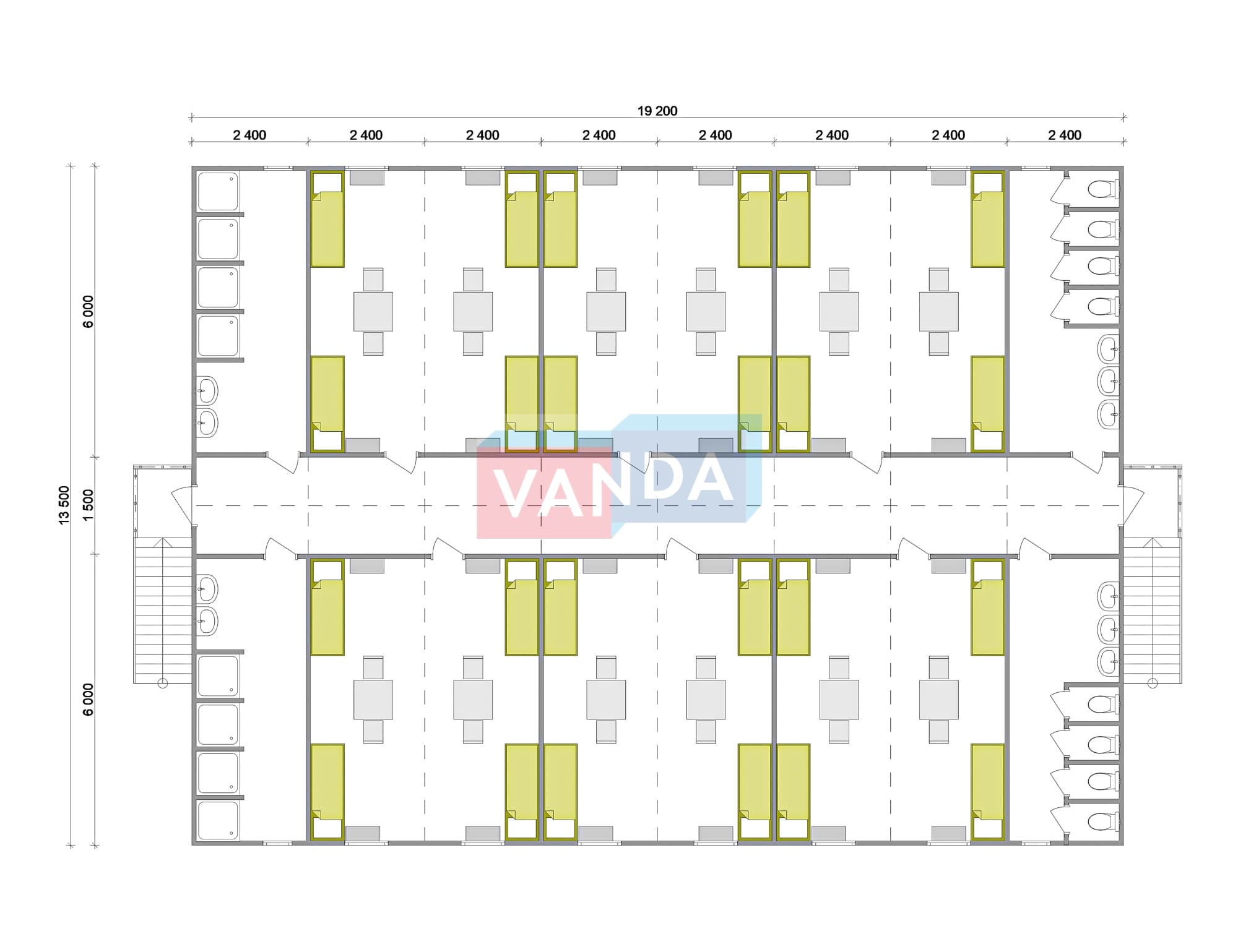 Проект общежития из блок контейнеров 13,5x19,2 ЛДСП