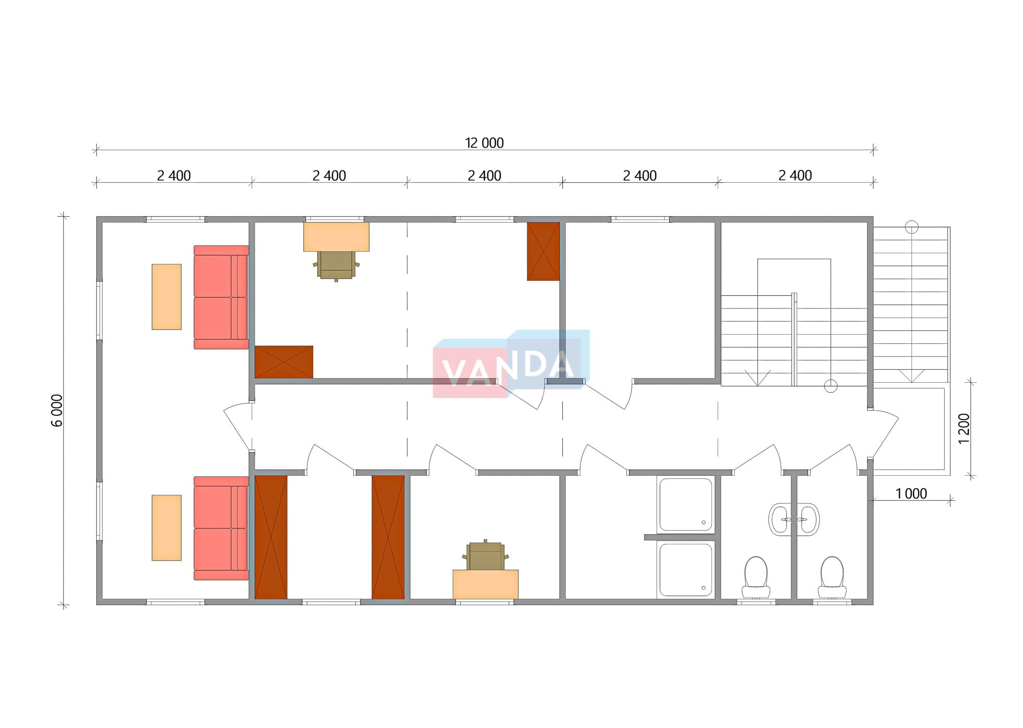 • Габаритные размеры - стандартные размеры одного модульного здания (наружные): Длина: 6 м Ширина: 2,45 м Высота: 2,5 м.