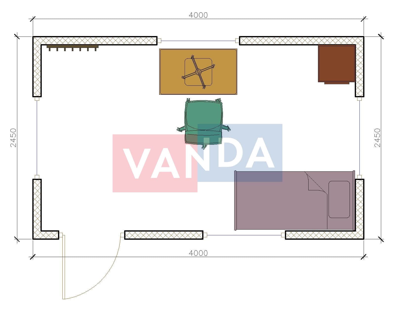 Металлическая бытовка с тамбуром 5,85 x 2,4 - Оргалит ДВП