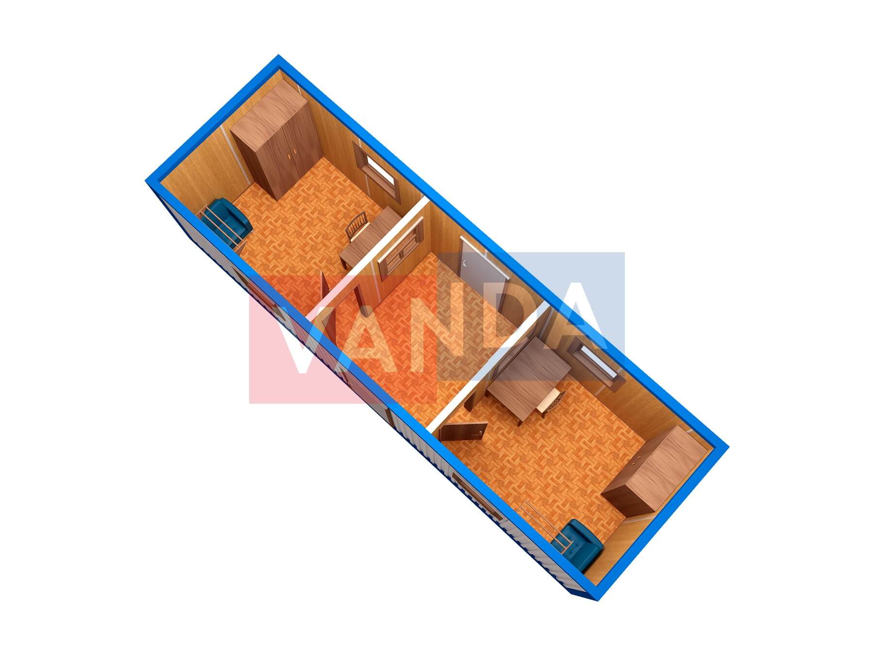 Проект общежития из блок контейнеров 9x21,6 Панели МДФ