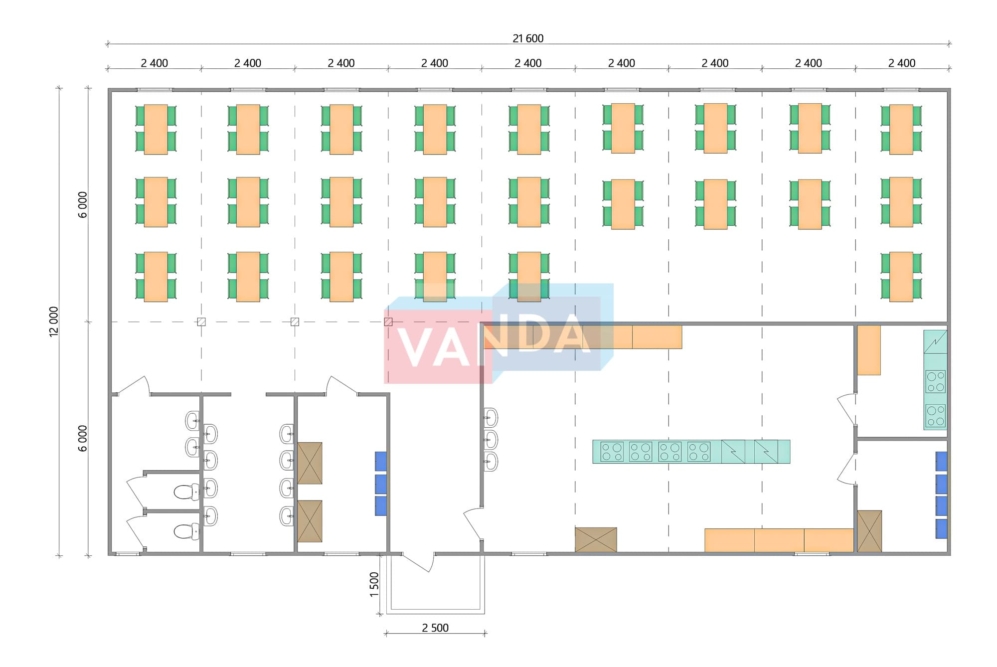 ПРОЕКТ СТОЛОВОЙ ИЗ БЛОК КОНТЕЙНЕРОВ 12x21,6