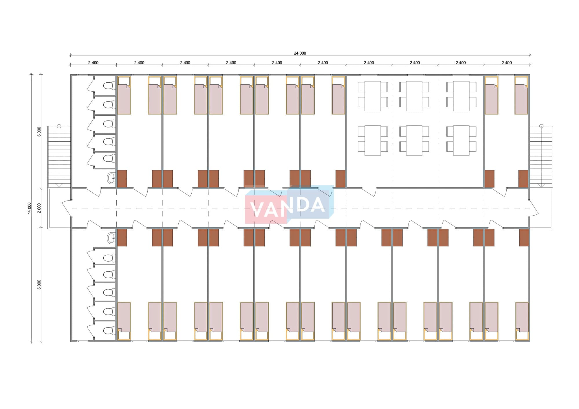 Проект общежития из блок контейнеров 13,5x19,2 ЛДСП