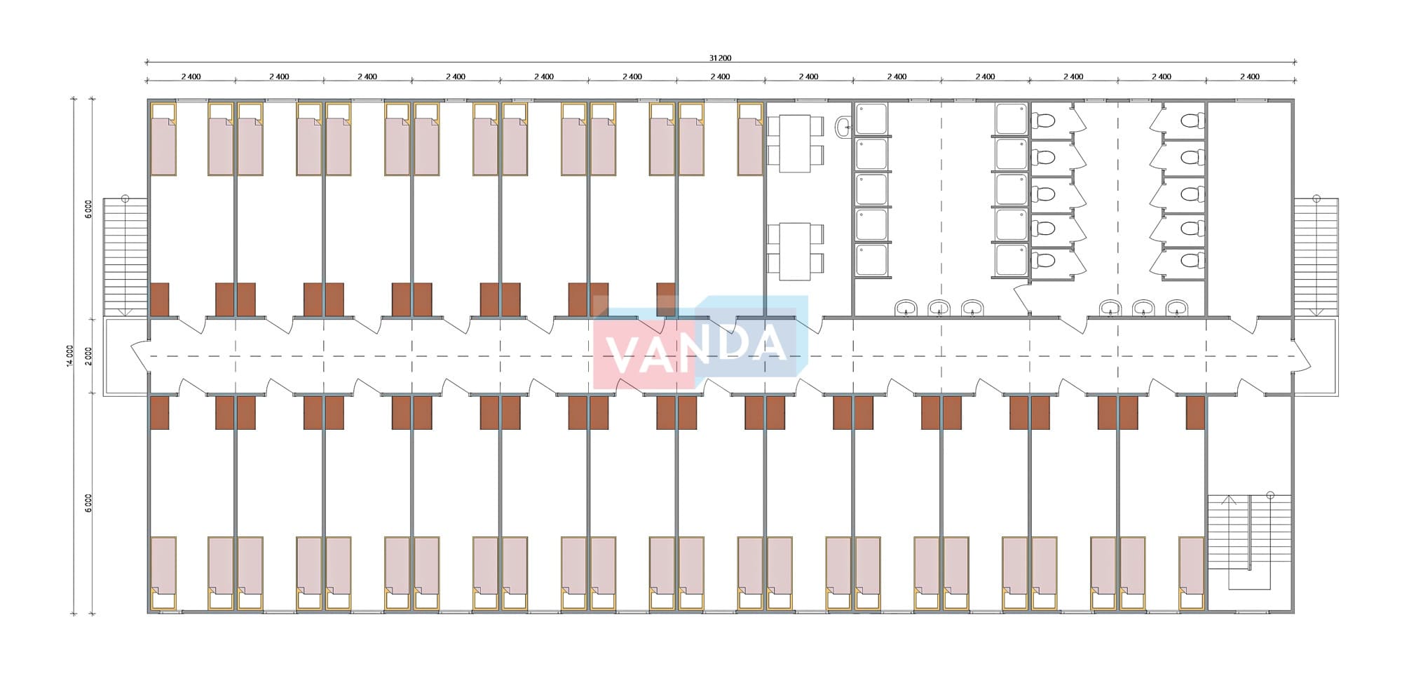 Проект общежития из блок контейнеров 14x24 ЛДСП